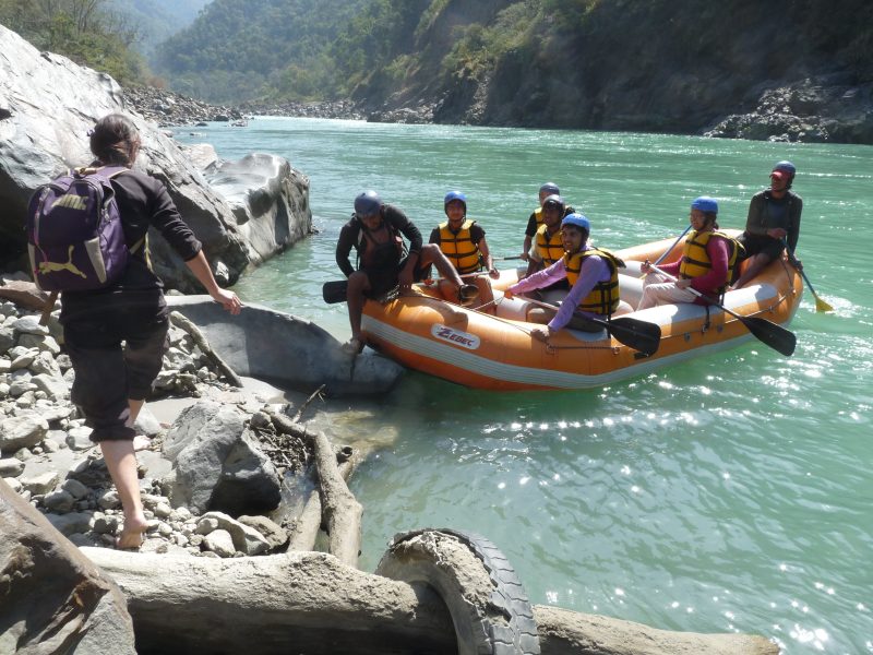 Trekking sur les sentiers de l’Himalaya, baignades dans les cascades… Rafting dans sur les rapides du Gange.